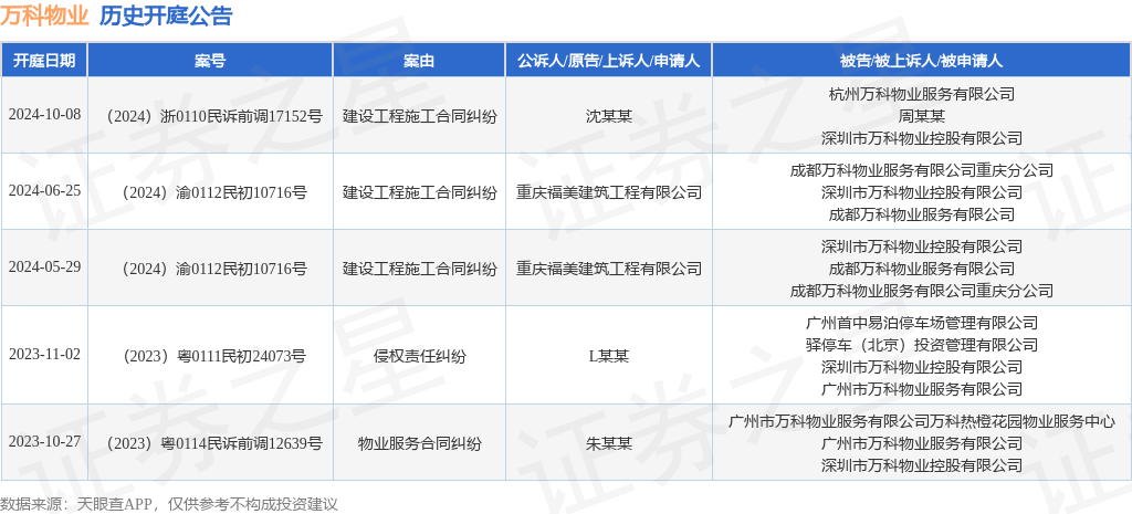 本站消息,根据天眼查APP显示,近日公布了一则深圳市万科物业控股有限公司作为被告/被上诉人的开庭公告,详细内容如下: