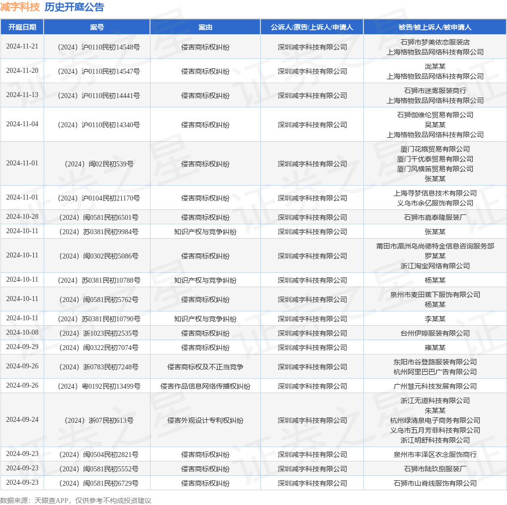 减字科技作为原告/上诉人的1起涉及侵害商标权纠纷的诉讼将于2024年10月8日开庭